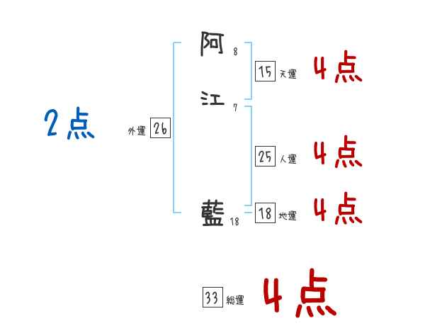 阿江藍さんの画数の鑑定結果