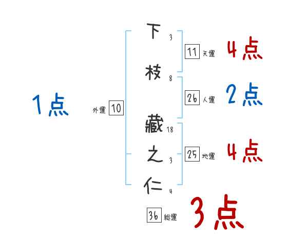 下枝藏之仁さんの画数の鑑定結果