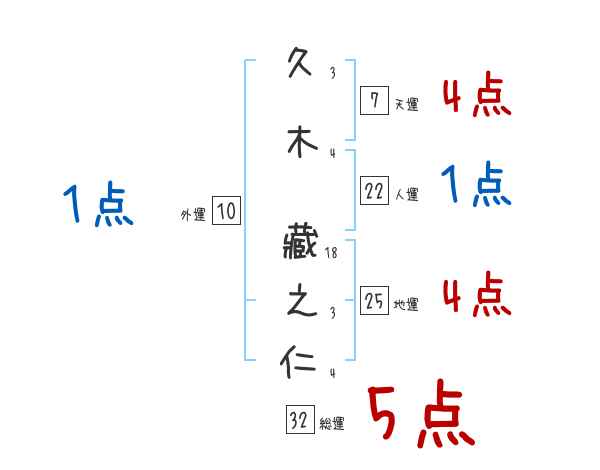総運![]() | 久木藏之仁さんの総運は32画の5つ星!柔軟性があり成功する。チャンスが多く金運が良い。 あなたの人生を表す1番重要な運勢です。生涯を通じて影響する総合運となり、主に50歳以降の晩年期に影響を及ぼします。 |