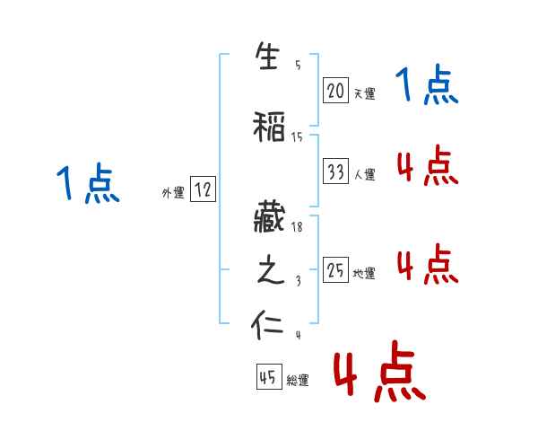 外運![]() | 生稲藏之仁さんの外運は12画の1つ星!簡単な失敗で諦めてしまいやすいかも。着実に行動すると良いでしょう。 生活面を象徴する運勢です。外部から受ける影響力を表し、結婚運、家庭運や職場、環境への順応性を表します。 |