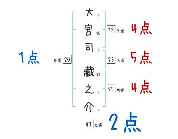 大宮司藏之介さんの画数の鑑定結果