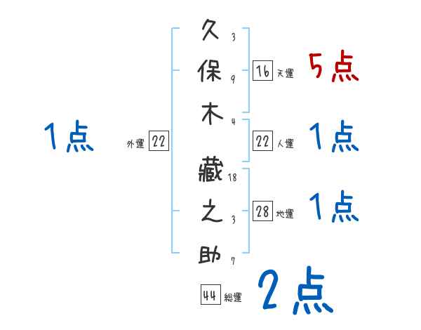 総運![]() | 久保木藏之助さんの総運は44画の2つ星!誠実で慎重な性格。物事を考えすぎないように注意しましょう。 あなたの人生を表す1番重要な運勢です。生涯を通じて影響する総合運となり、主に50歳以降の晩年期に影響を及ぼします。 |
