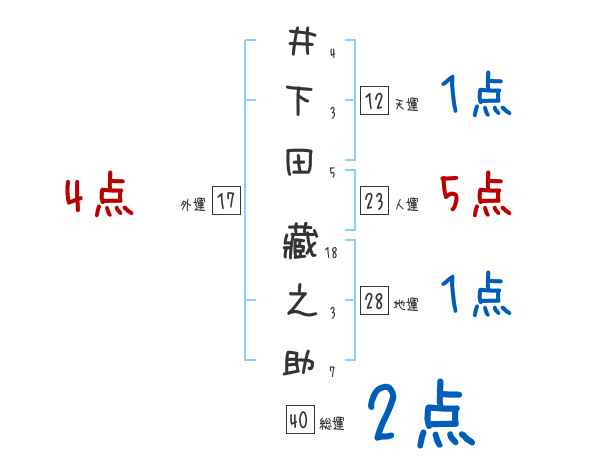 井下田藏之助さんの画数の鑑定結果
