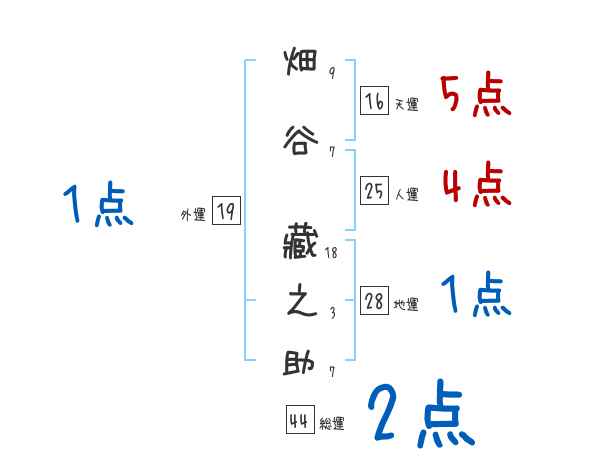外運![]() | 畑谷藏之助さんの外運は19画の1つ星!優れた才能を持ちますが、協調性が足りないことも。周りの人と協力する事を意識しましょう。 生活面を象徴する運勢です。外部から受ける影響力を表し、結婚運、家庭運や職場、環境への順応性を表します。 |