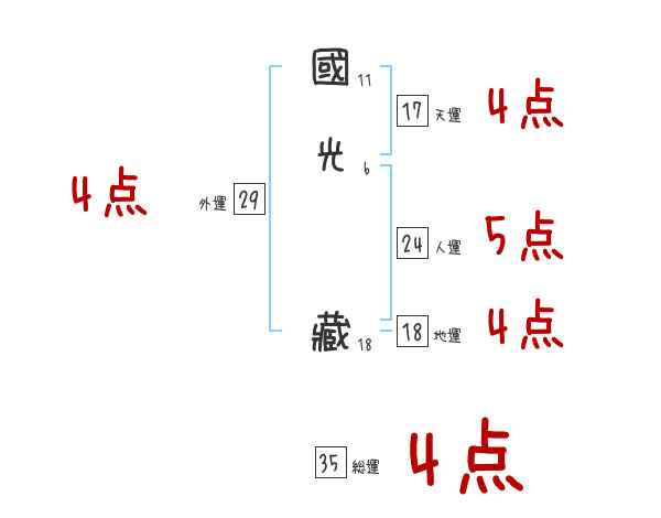 國光藏さんの画数の鑑定結果