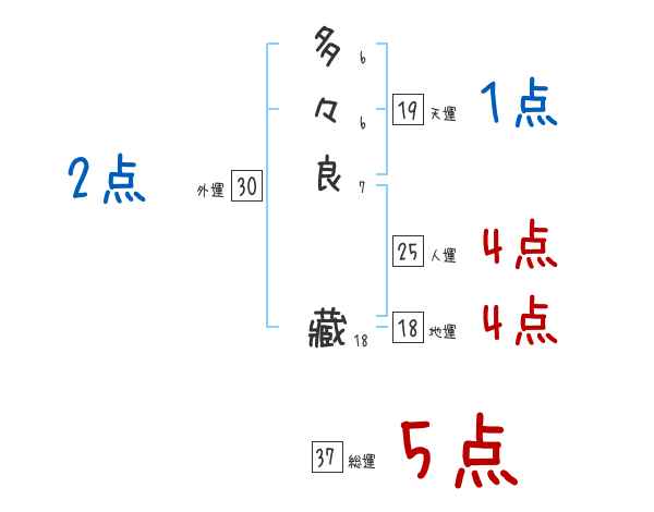 総運![]() | 多々良藏さんの総運は37画の5つ星!努力家で順応性に優れる。現実的な考え方ができ忠実に物事をこなす。 あなたの人生を表す1番重要な運勢です。生涯を通じて影響する総合運となり、主に50歳以降の晩年期に影響を及ぼします。 |
