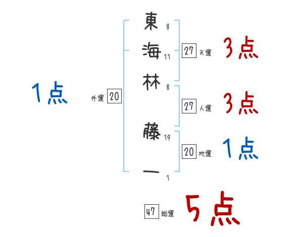 総運![]() | 東海林藤一さんの総運は47画の5つ星!実力が開花し発展する円満な人生。財に恵まれる。 あなたの人生を表す1番重要な運勢です。生涯を通じて影響する総合運となり、主に50歳以降の晩年期に影響を及ぼします。 |