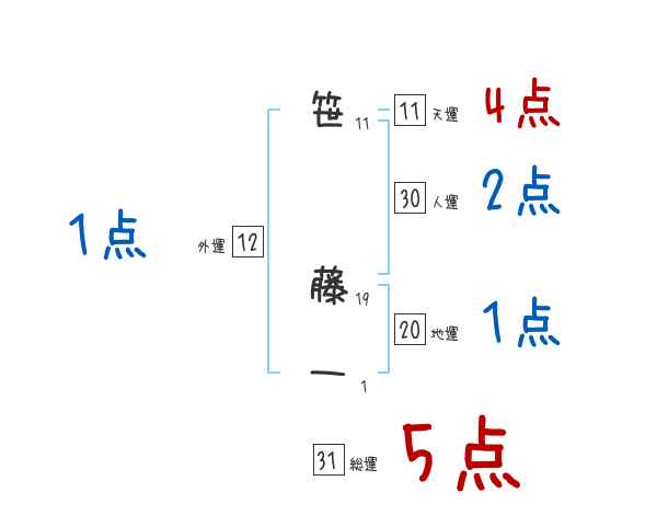 笹藤一さんの画数の鑑定結果