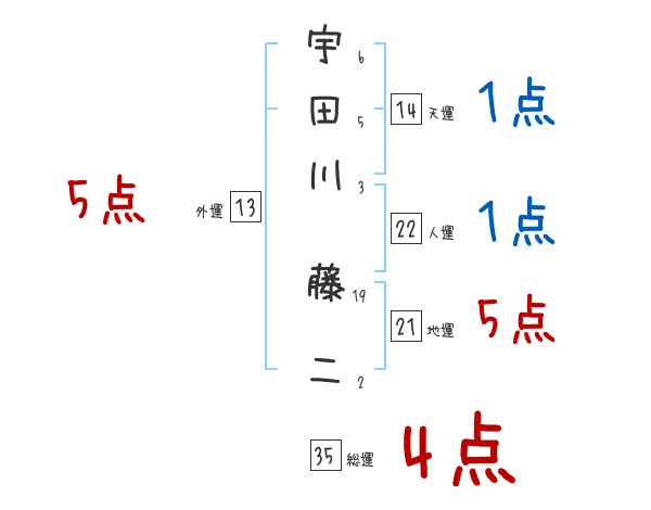 宇田川藤二さんの画数の鑑定結果