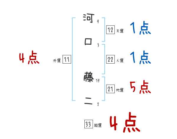 河口藤二さんの画数の鑑定結果