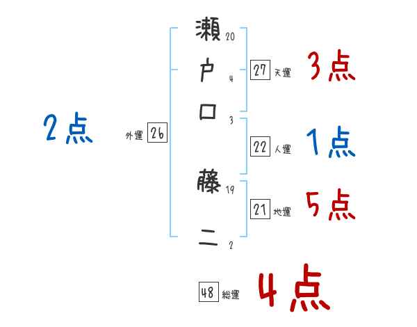 瀬戸口藤二さんの画数の鑑定結果