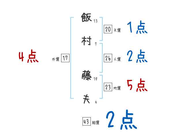 飯村藤夫さんの画数の鑑定結果