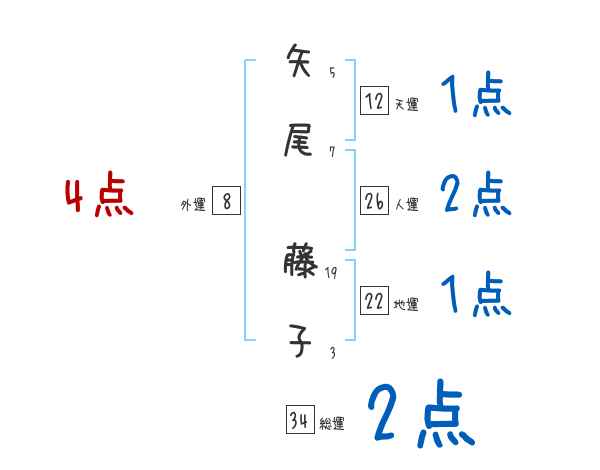 総運![]() | 矢尾藤子さんの総運は34画の2つ星!独創性に優れるが、自尊心が強く災難に注意しましょう。 あなたの人生を表す1番重要な運勢です。生涯を通じて影響する総合運となり、主に50歳以降の晩年期に影響を及ぼします。 |