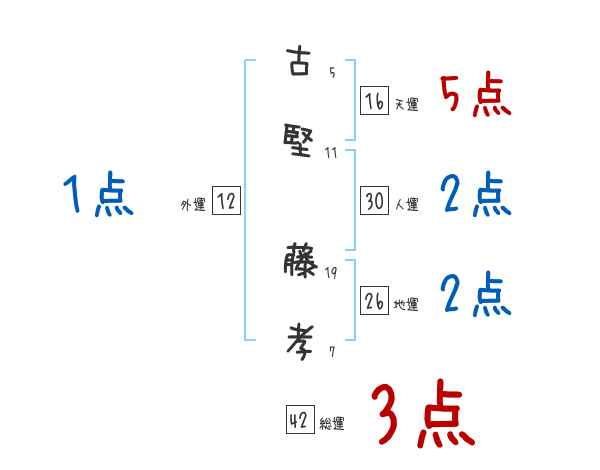 古堅藤孝さんの画数の鑑定結果