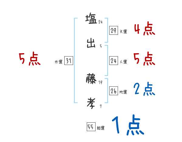 塩出藤孝さんの画数の鑑定結果