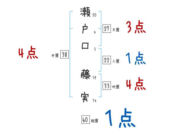 瀬戸口藤実さんの画数の鑑定結果