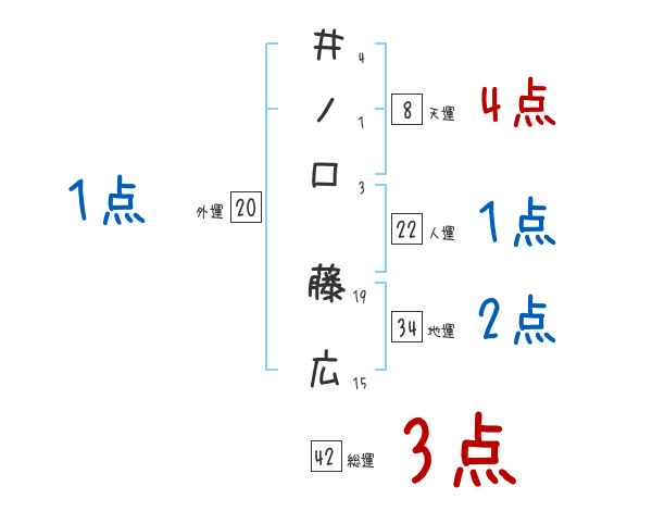 総運![]() | 井ノ口藤広さんの総運は42画の3つ星!病気に注意。多芸であるが消極的でおとなしい。 あなたの人生を表す1番重要な運勢です。生涯を通じて影響する総合運となり、主に50歳以降の晩年期に影響を及ぼします。 |