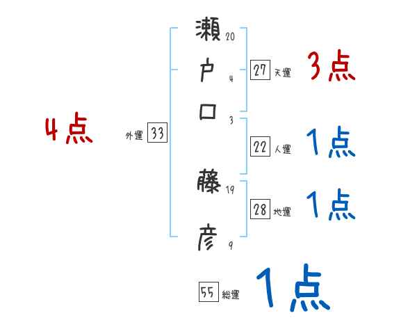 瀬戸口藤彦さんの画数の鑑定結果