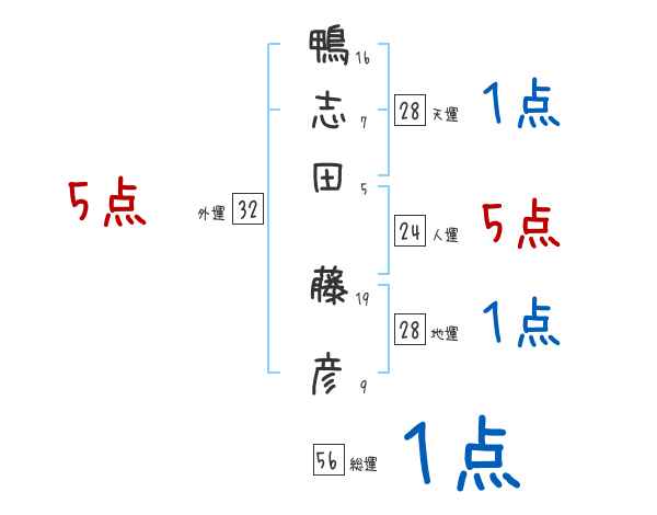 鴨志田藤彦さんの画数の鑑定結果