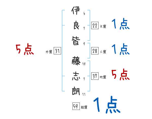 伊良皆藤志朗さんの画数の鑑定結果