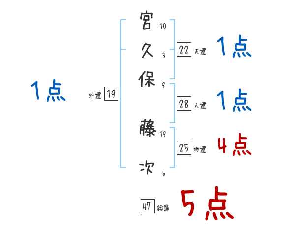 宮久保藤次さんの画数の鑑定結果