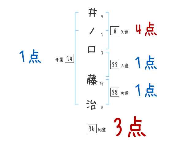 総運![]() | 井ノ口藤治さんの総運は36画の3つ星!先見性が豊かです。多少神経質で苦労することも。 あなたの人生を表す1番重要な運勢です。生涯を通じて影響する総合運となり、主に50歳以降の晩年期に影響を及ぼします。 |