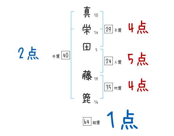 天運![]() | 真栄田藤箆さんの天運は29画の4つ星!完全主義で才能がある。厳格な心の持ち主。 家系が持つ宿命的な運勢を表します。祖先から受け継いだ苗字ですので自分の力が及びません。家柄を象徴します。 |