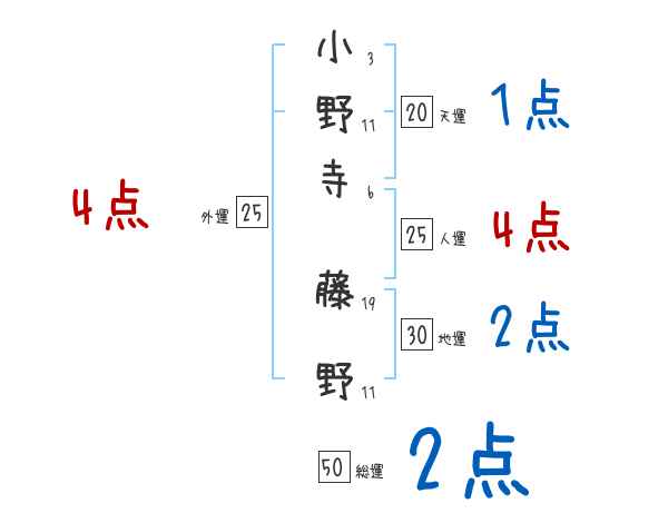 人運![]() | 小野寺藤野さんの人運は25画の4つ星!個性があり才能があふれる。強運の持ち主で発展する。 性格や才能などを表す2番目に重要な運勢です。人間関係や協調性、社会的な成功に影響します。主に20歳から50歳ぐらいまでの中年期の運勢を表します。 |
