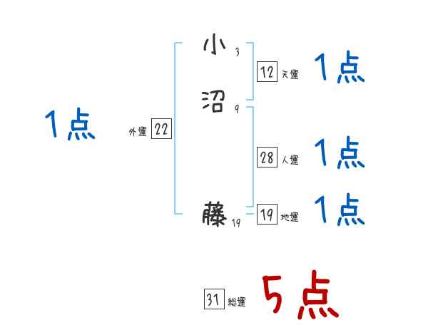 小沼藤さんの総運は31画の5つ星