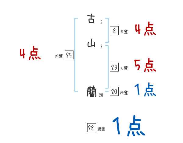 古山藺さんの画数の鑑定結果
