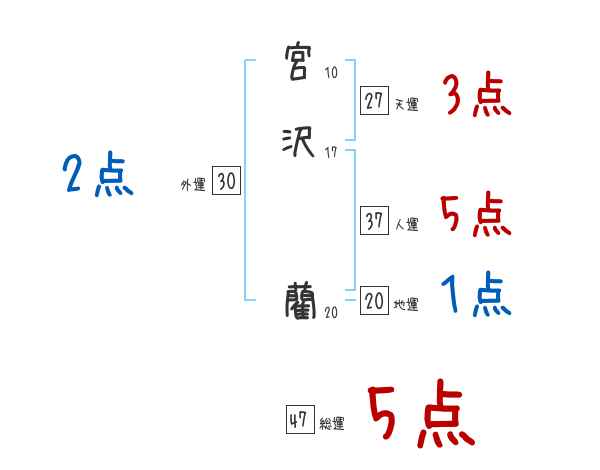 宮沢藺さんの画数の鑑定結果