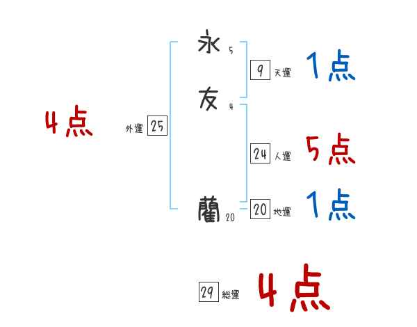 永友藺さんの画数の鑑定結果