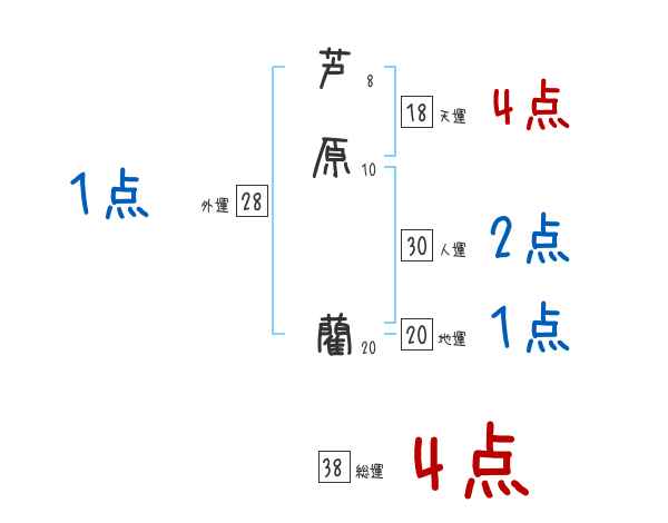 芦原藺さんの画数の鑑定結果