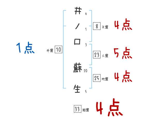 家系が持つ宿命的な運勢を表します。祖先から受け継いだ苗字ですので自分の力が及びません。家柄を象徴します。