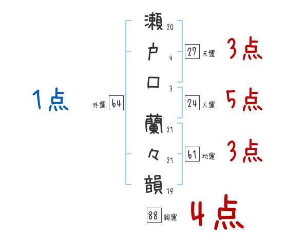 瀬戸口蘭々韻さんの画数の鑑定結果