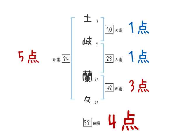 土岐蘭々さんの画数の鑑定結果