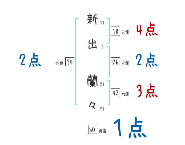 新出蘭々さんの画数の鑑定結果