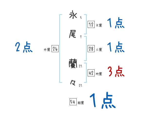 永尾蘭々さんの画数の鑑定結果