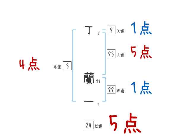 丁蘭一さんの画数の鑑定結果