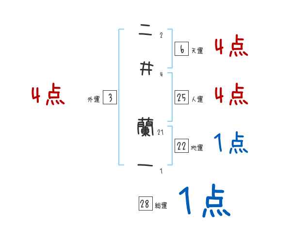 二井蘭一さんの画数の鑑定結果