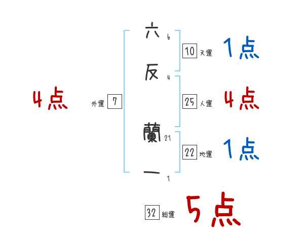 総運![]() | 六反蘭一さんの総運は32画の5つ星!柔軟性があり成功する。チャンスが多く金運が良い。 あなたの人生を表す1番重要な運勢です。生涯を通じて影響する総合運となり、主に50歳以降の晩年期に影響を及ぼします。 |