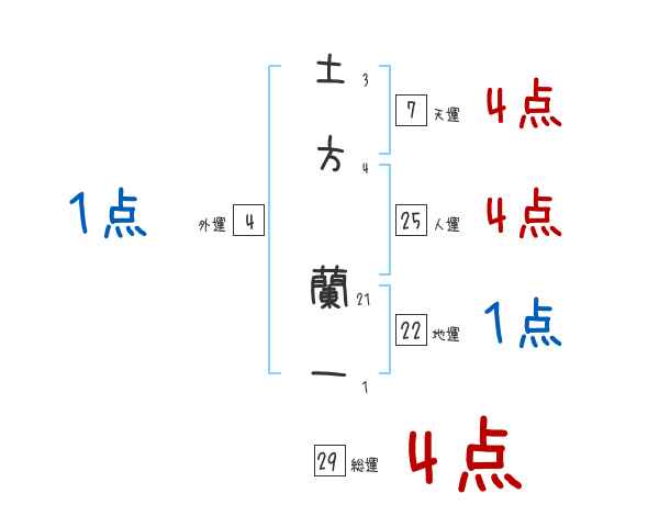 土方蘭一さんの画数の鑑定結果