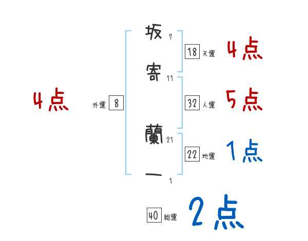 坂寄蘭一さんの画数の鑑定結果