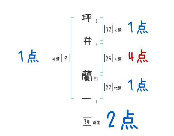 坪井蘭一さんの画数の鑑定結果