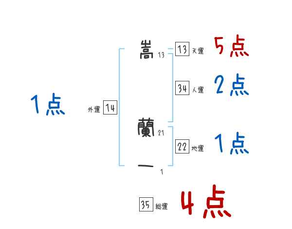 嵩蘭一さんの画数の鑑定結果