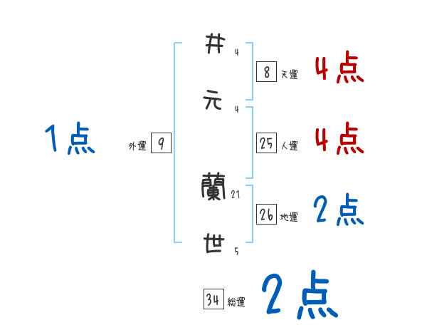 天運![]() | 井元蘭世さんの天運は8画の4つ星!勤勉家。根気強く努力し成功する。忍耐力がある。 家系が持つ宿命的な運勢を表します。祖先から受け継いだ苗字ですので自分の力が及びません。家柄を象徴します。 |