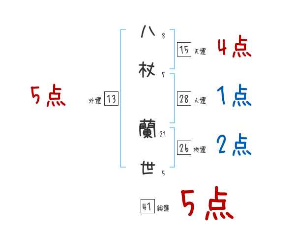 八杖蘭世さんの画数の鑑定結果