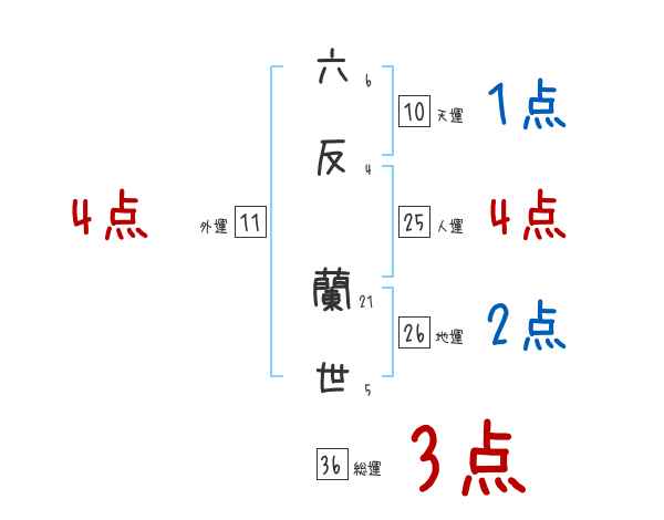 天運![]() | 六反蘭世さんの天運は10画の1つ星!不安を感じやすい傾向。ストレスを抱えないように注意しましょう。 家系が持つ宿命的な運勢を表します。祖先から受け継いだ苗字ですので自分の力が及びません。家柄を象徴します。 |