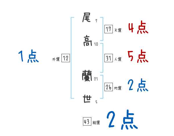 尾高蘭世さんの画数の鑑定結果
