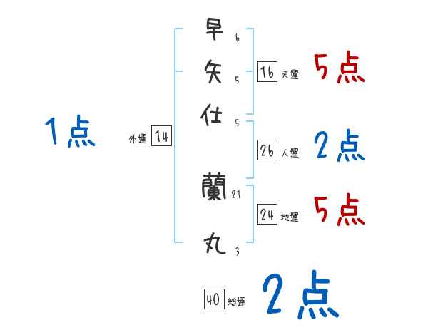 早矢仕蘭丸さんの画数の鑑定結果